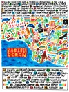 Illustrated map of Los Angeles, Handwritten type and spot illustrations for fold-out poster for P.F. Candle Co in Los Angeles, CA